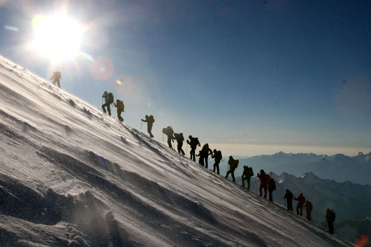 Ascent to Elbrus is kind of combination of Kilimanjaro hike and MontBlanc climb = you are hiking volcano in crampons and with ice axe.
