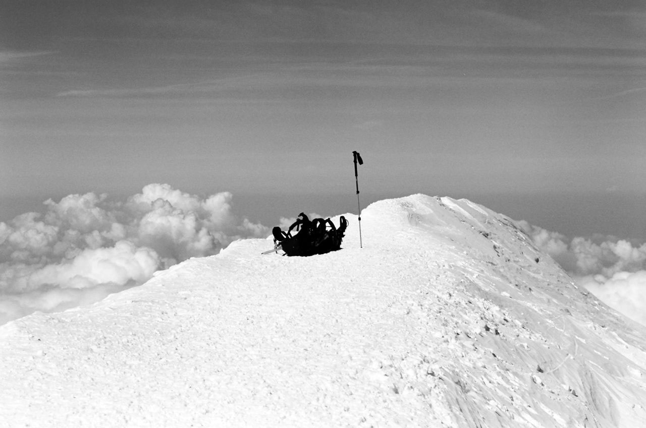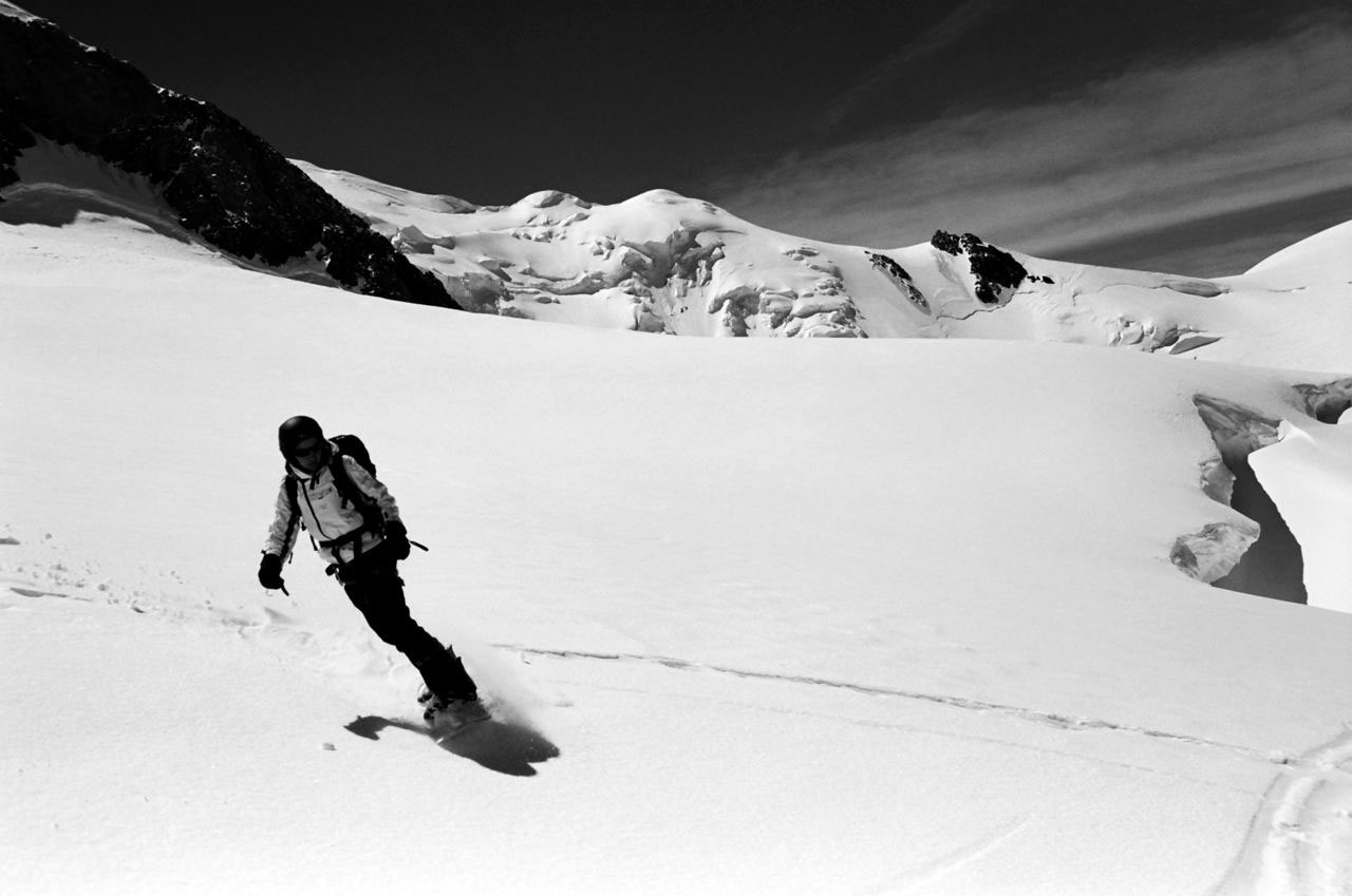 At the end of the18-hour day, after descending 3800 m on board & foot to Chamonix, having lost 2 toenails in this battle, I swore to pick up skiing again.
